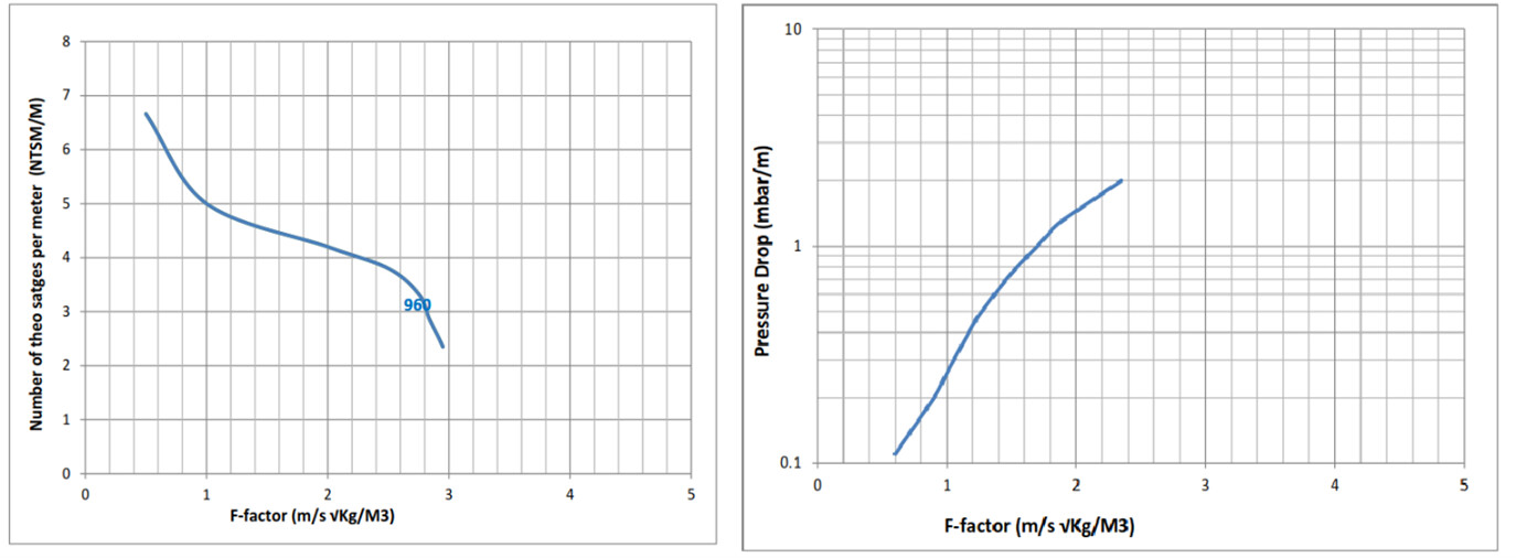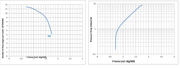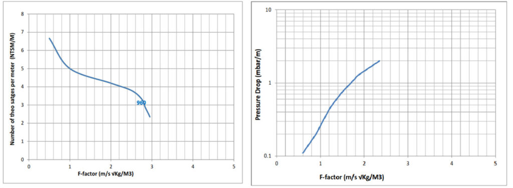 – Nejvyšší počet teoretických stupňů, při velmi nízkém zatížení kapalinou