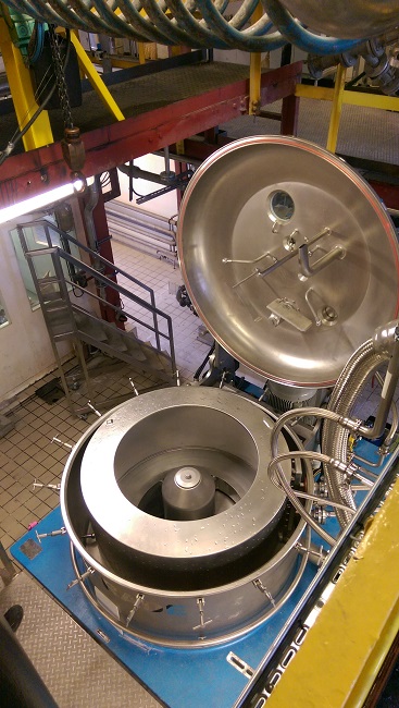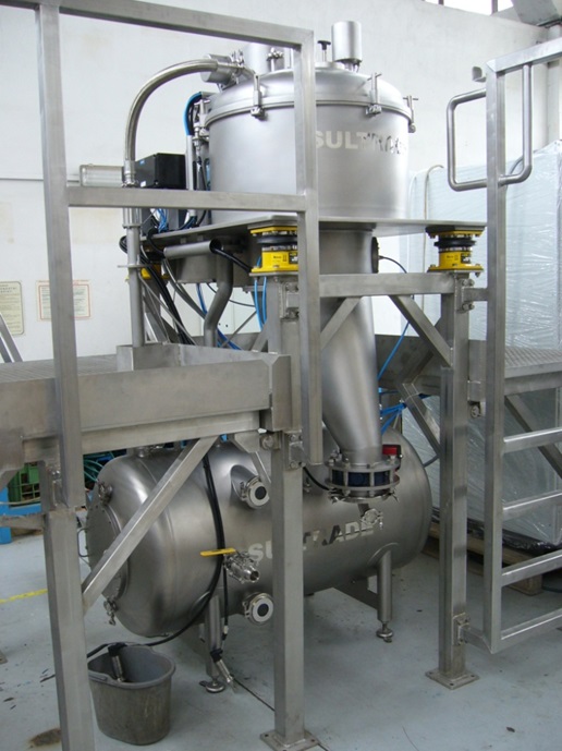 Vertikální vyřezávací  odstředivka se spodním výpadem produktu  – Navržena pro farmaceutický průmysl