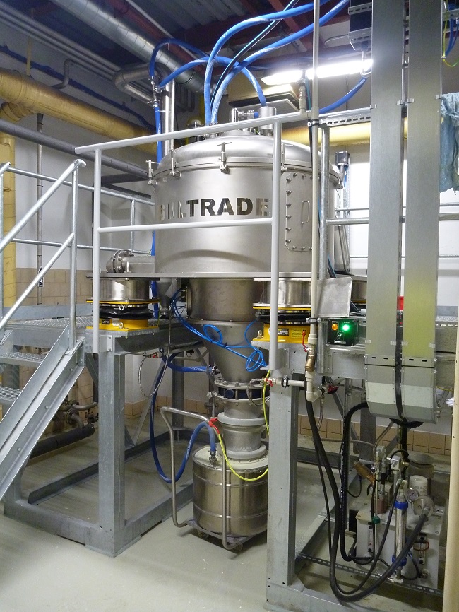 Odstředivky typu SCVB, tedy odstředivky spodem vyprazdňované jsou vyráběny v souladu s GMP podmínkami a ve velmi variabilní konstrukci vlastní odstředivky i jejího příslušenství. Odstředivky jsou plynotěsné s možností návrhu do ATEX prostředí (např. Ex II 2G IIC T4) s možností inertizace vnitřního prostoru odstředivky.