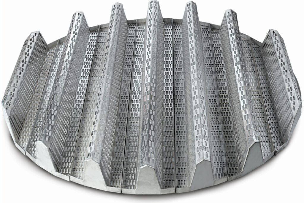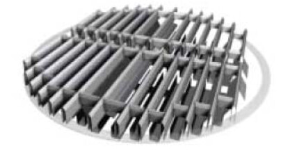 Speciální design vyžadují rošty pro sypanou vestavbu a slouží pro distribuci plynu do spodních vrstev výplně. Obě mřížky mají otevřenou plochu průřezu.
